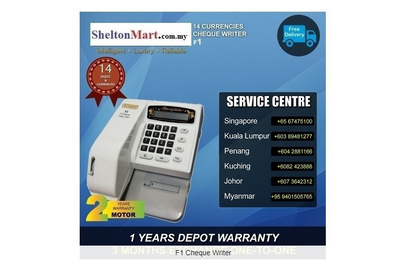 Intelligent Cheque Printer To print date,payee, amount Direct printing / connect to PC via USB port Dimension -350W x 330H x 180Dmm Net weight : 2.5kg 1 year depot warranty F.O.C Software Installation 1st month on-site Training 2nd-12th months off-site support