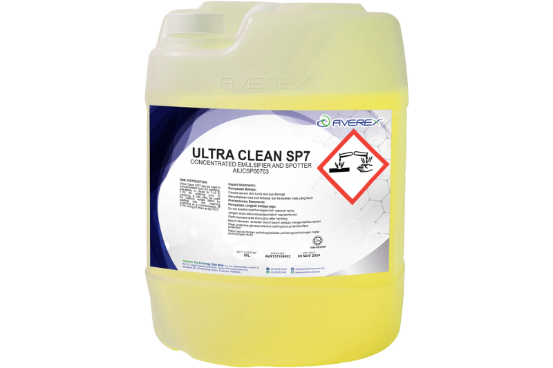 Non-volatile concentrated liquid solvent emulsifier with a unique formulation designed to give the laundry operator maximum versatility in product application.