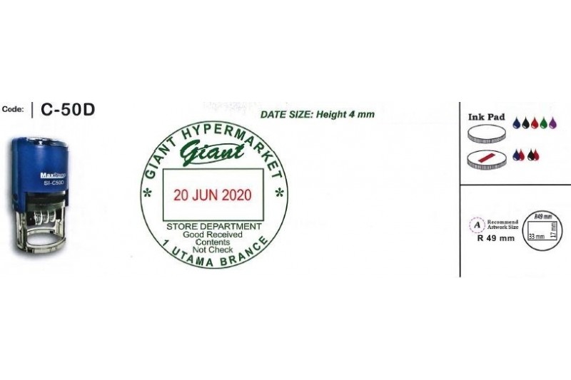 Ink Available: Blue/ Black/ Red/ Green/ Violet * Please click the Code below for details. Code Ink Pad C-30S 1 colour 2 colour C-37S 1 colour 2 colour C-43S 1 colour 2 colour C-50D 1 colour 2 colour C-43T/12 1 colour 2 colour C-43T/24 1 colour 2 colour