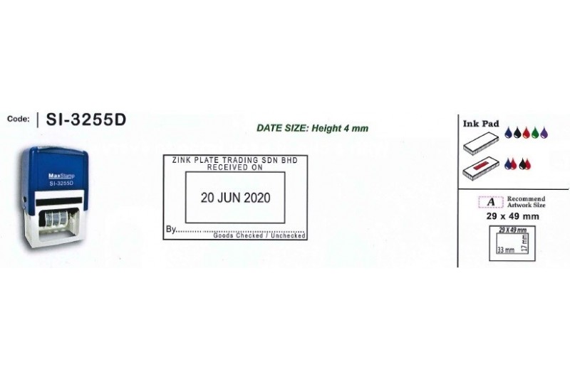 All Text-plate are made of Red Rubber Word: 1.5mm thickness Base: 0.4mm thickness Date Size: 4mm Cover Selection: Black/ Grey/ Pink/ Violet/ Blue/ L.Blue/ L.Green/ Yellow/ Orange/ Red Ink Available: Blue/Black/Red/Green/Violet *Please email us the draft: sales@sheltonmart.com.my