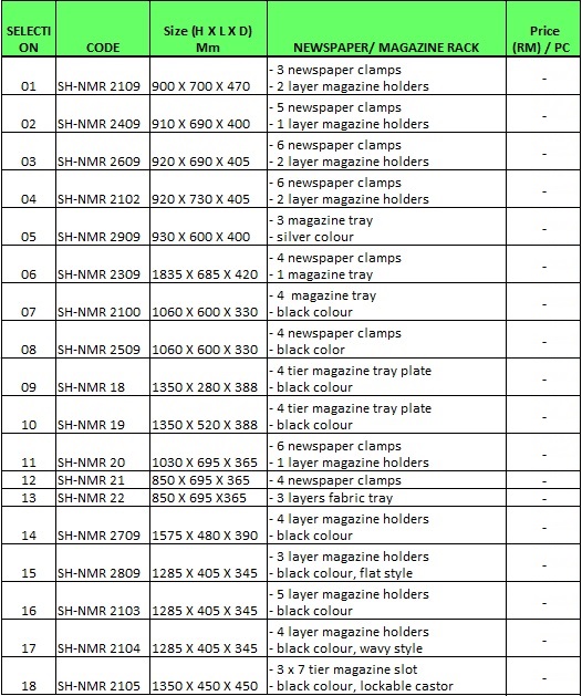 - Various type of newspaper and magazine rack