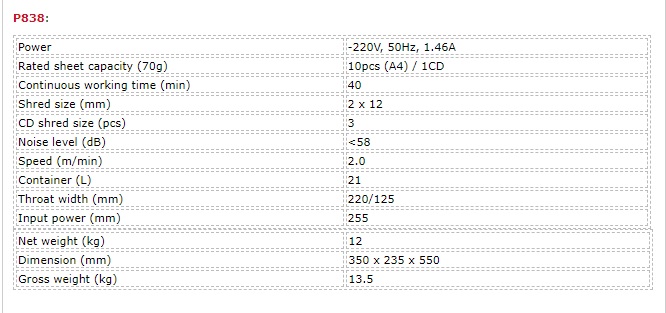 SPECIFICATIONS: Weight: 2.2kg Display: LCD Keypad: 22keys Power consumption: 3.5W (20W when printing) Power Source: AC 110V or 220V, 50/60Hz Dimension:245 x 185 x 105 (mm)