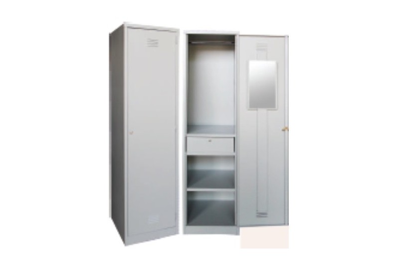 1 COMPARTMENT STEEL LOCKER WITH STEEL SWINGING DOOR C/W 1 CLOTH HANGING BAR, 1 MIRROR, 1 CENTRE DRAWER WITH CAMLOCK & 1 FIXED SHELF AT BOTTOM |