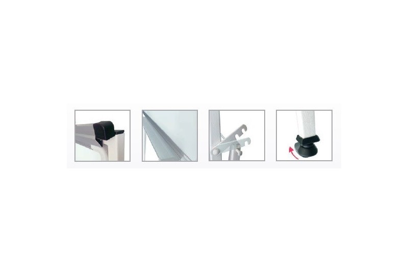 Flipchart – Magnetic whiteboard/green board in the aluminium frame– Smooth surface with excellent colour contrast with markers– Strong clip to hold paper– Adjustable height to your preferred– 4 lockable castor wheels to keep the board stable and durable
