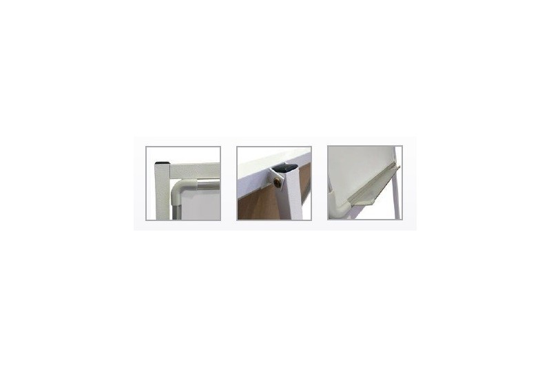 Flipchart – Magnetic whiteboard/green board in the aluminium frame– Smooth surface with excellent colour contrast with markers– Strong clip to hold paper– Adjustable height to your preferred– 4 lockable castor wheels to keep the board stable and durable