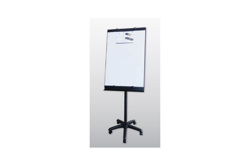 Flipchart – Magnetic whiteboard/green board in the aluminium frame– Smooth surface with excellent colour contrast with markers– Strong clip to hold paper– Adjustable height to your preferred– 4 lockable castor wheels to keep the board stable and durable