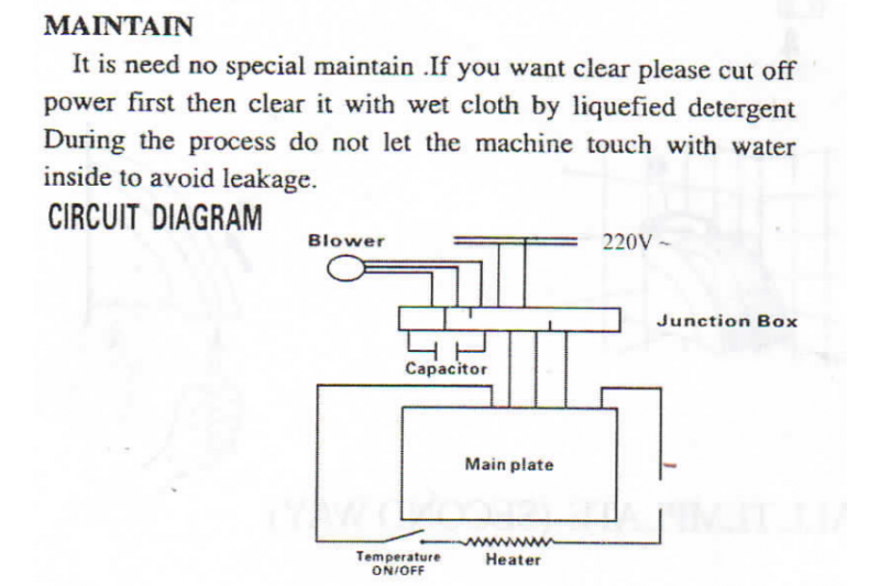 | Thermal Fuse | 60°C +- 20°C |