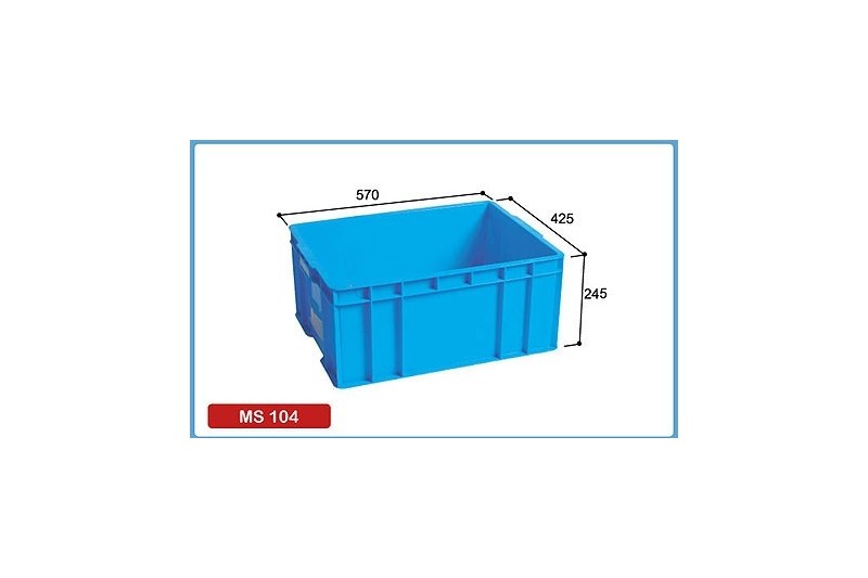 MS 1004 External Size 620 x 425 x 250 mm Capacity 53 Litre Internal 576 x 390 x 238 mm External 24.4 x 16.7 x 9.8" inc Material PP Stacking 238 mm Optional MS 1002C (Cover) Application Suitable for transportation and storage of a wide range of products such as tools, spare parts, industrial products etc....