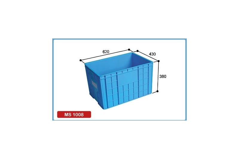MS 1034H (Hole) External Size 610 x 430 x 320 mm Internal 520 x 405 x 310 mm Internal (B) 489 x 373 mm Colour Red /Blue /Yellow /Green Material PP Volume 58 Litre Nesting Height 74mm Stacking Height 300mm Optional MS 1002C (Cover) Application Suitable for transportation and storage of a wide...