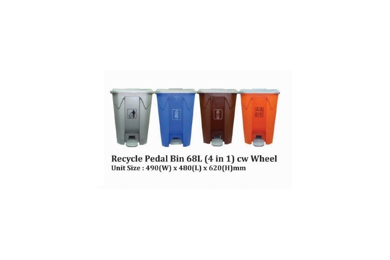 Recycle Pedal Bin 68L (3 in 1) cw Wheel Size: 490W x 480L x 620H mm
