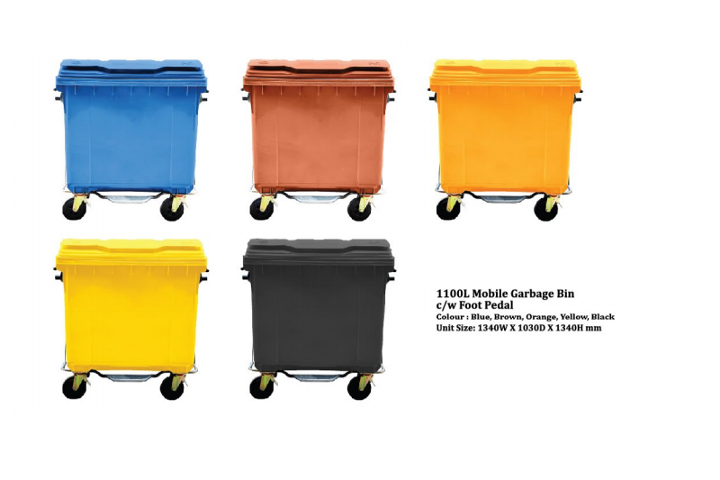 Mobile Garbage Bin 1100L Colour: Blue/Brown/Orange/Yellow/Black Size: 1340W x 1030D x 1340H mm