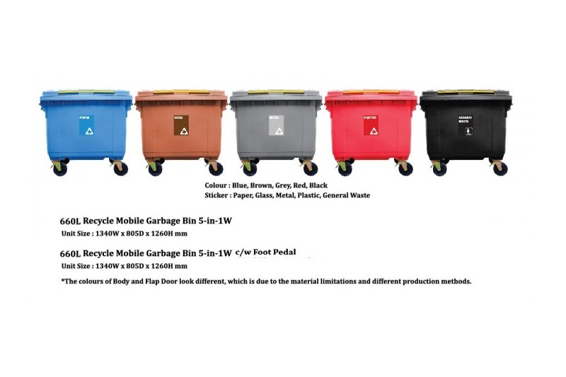 660L Recycle Mobile Garbage Bin / c/w Foot Pedal (5 in 1W)