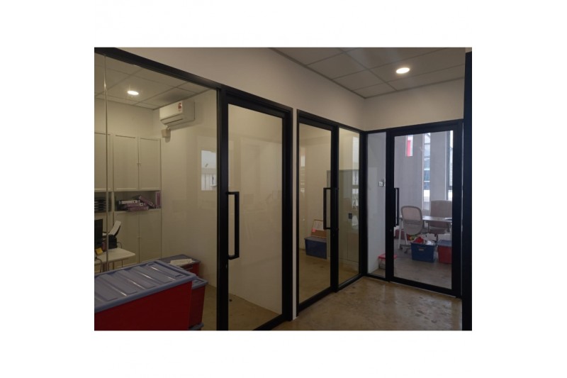 Description: • Glass Thickness: 12 mm • Weight of the Glass: 1sqft = approximately 2.4 kg • Door Types Available: Frameless / With aluminium frame • Wall Attach: Concrete / Gypsum board • Selection: Frameless or with Aluminium Frame Sliding System Available: • Deluxe multi-hole sliding door system ( Frameless ) • Normal sliding door system (...