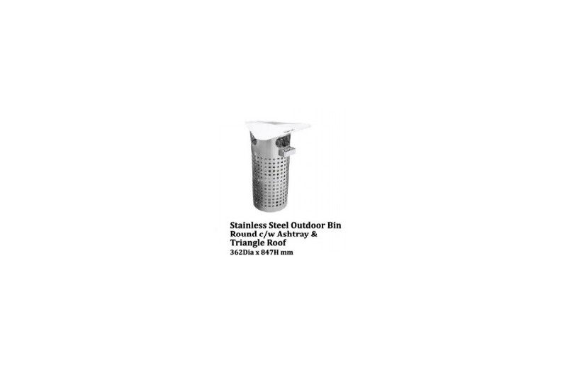 Stainless Steel Outdoor Bin Round c/w Ashtray & Triangle Roof