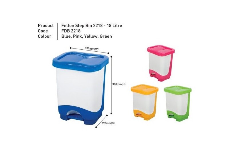 Plastic Round Pedal Bin Colour: Green, Blue, Yellow, Red Size: 15L - 300D x 315Hmm 30L - 330D x 400Hmm 45L - 415D x 540Hmm