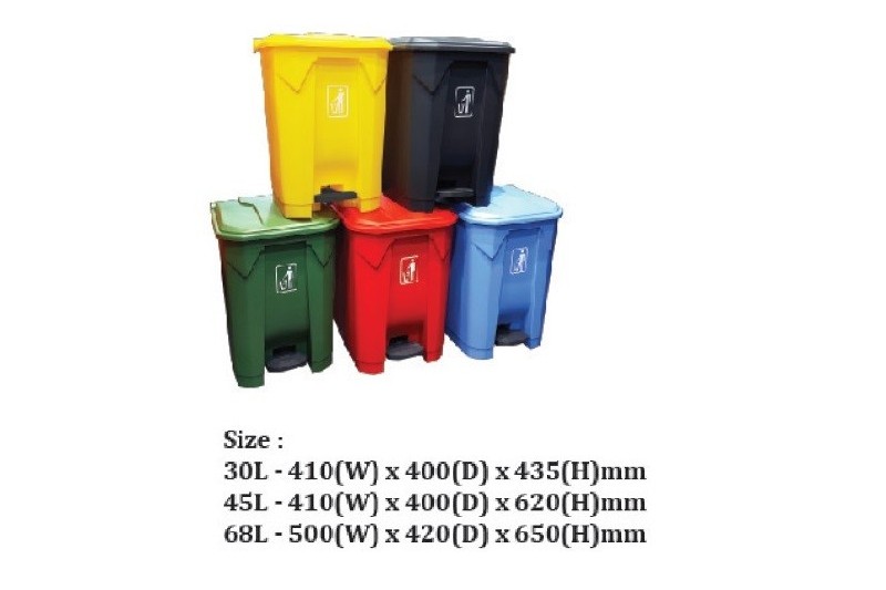 Plastic Round Pedal Bin Colour: Green, Blue, Yellow, Red Size: 15L - 300D x 315Hmm 30L - 330D x 400Hmm 45L - 415D x 540Hmm