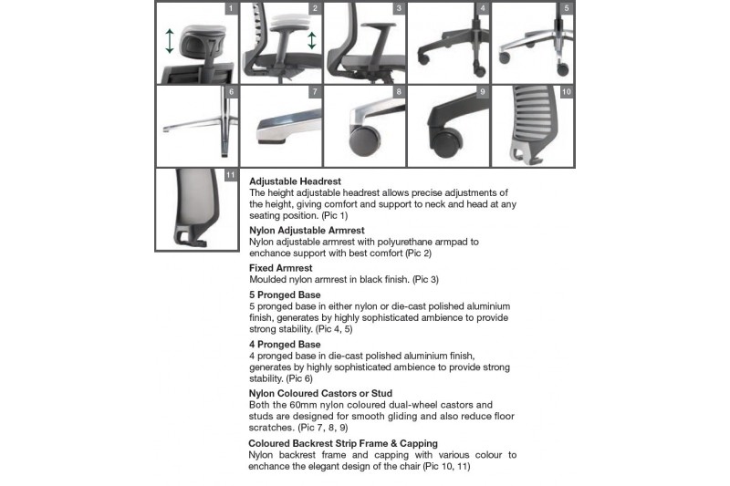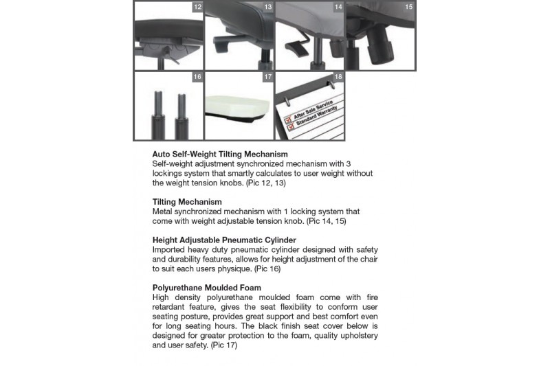 * Fabric / PU / Zen / Softec / Half Leather applicable to Headrest & Seat only