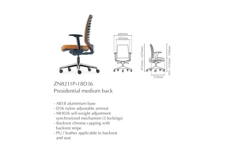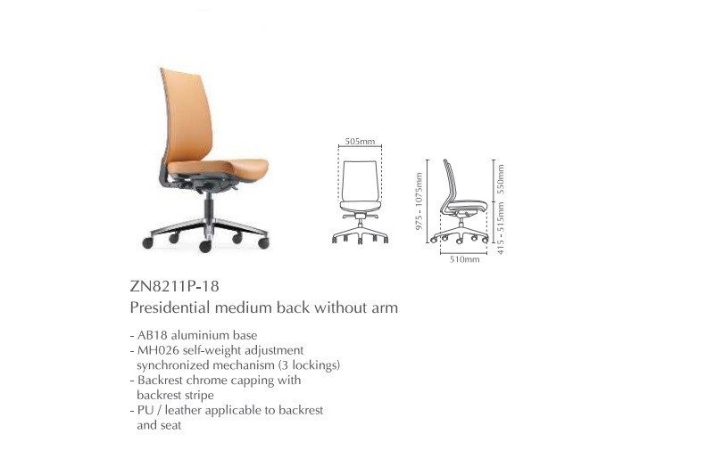 | 03 | ZN8211P-18 | Presidential Medium Back without Arm | 823.00 | 904.00 | 904.00 |