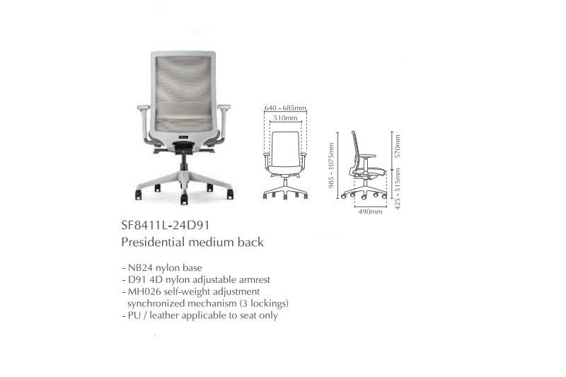 | 03 | SF8411L-24 | Presidential Medium Back without Arm | 655.00 | 672.00 | 713.00 | 869.00 |