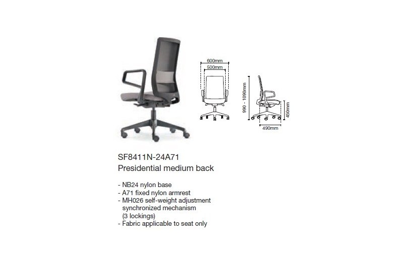 | 03 | SF8411N-24 | Presidential Medium Back without Arm | 719.00 |