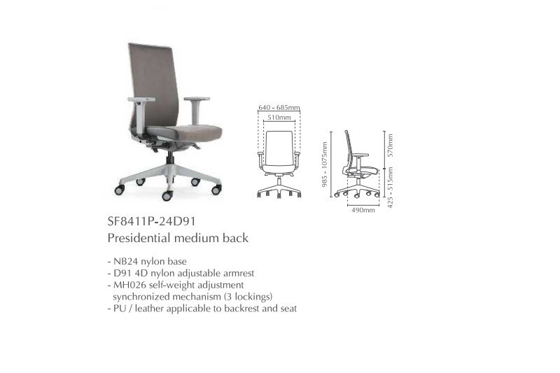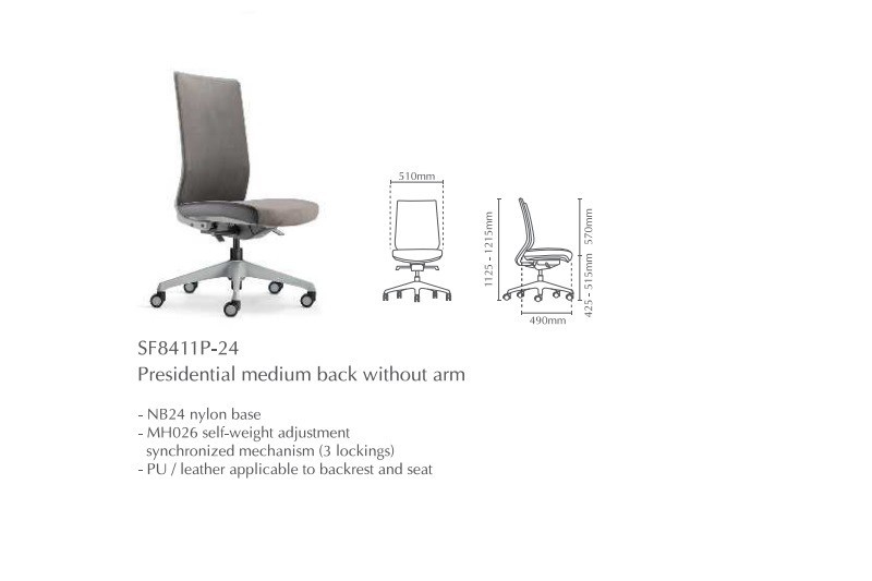 | 03 | SF8411P-24 | Presidential Medium Back without Arm | 690.00 | 771.00 | 771.00 |