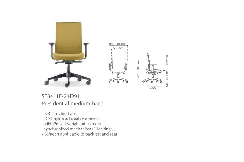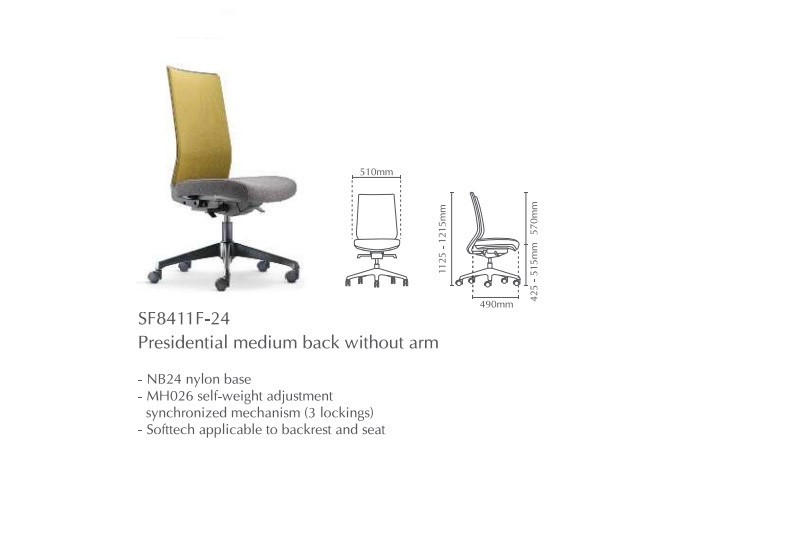 | 03 | SF8411F-24 | Presidential Medium Back without Arm | 690.00 | 771.00 | 771.00 |