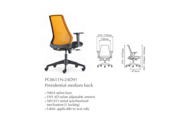 | 06 | PC8611N-15RHD91 | Presidential Medium Back |