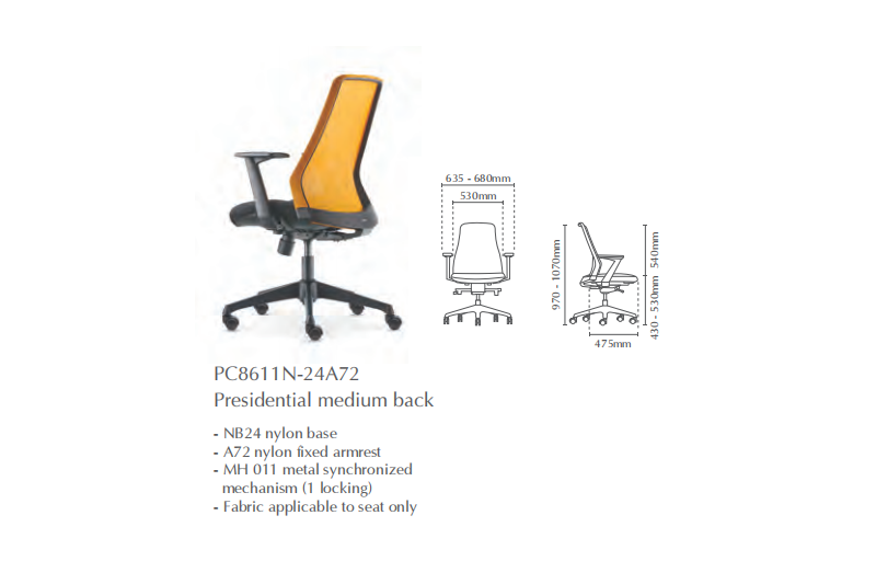 | 03 | PC8611N-24 | Presidential Medium Back without Arm | 632.00 | 649.00 | 684.00 | 684.00 |