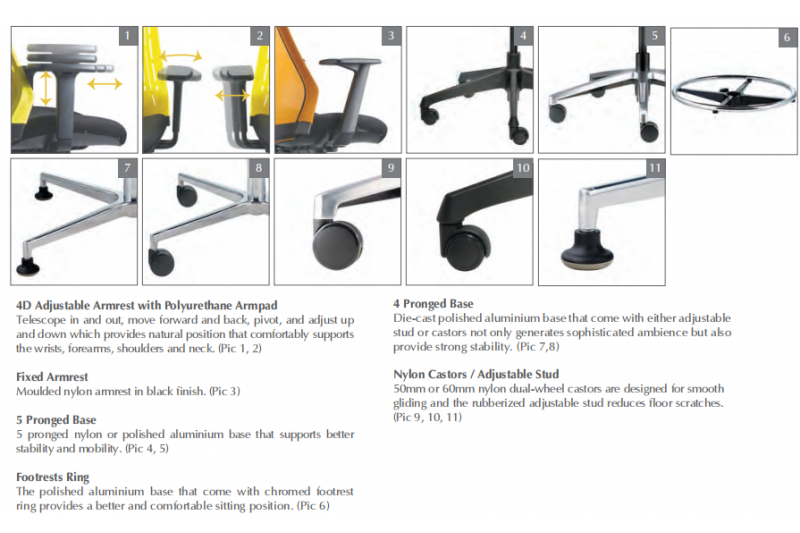 * AB18 – Nylon Base; D91 – 4D Nylon Adjustable Armrest