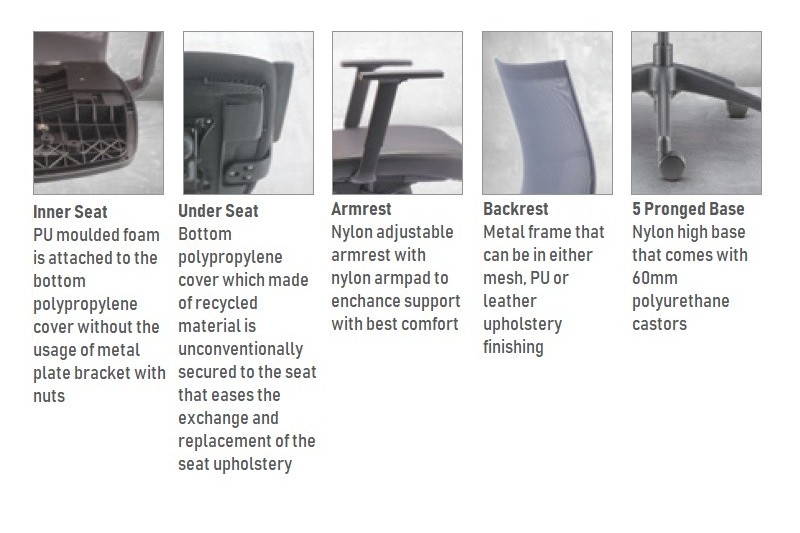Hugo is designed with careful and meticulous sewing of the upholstery based on high quality and nest craftsmanship. The chair comes with adjustable backrest that support and improve the sitting posture. Aim to harmonize the environment, the premium design of the chair sits in seamlessly in all sort of office environment – be it a big office space or even...