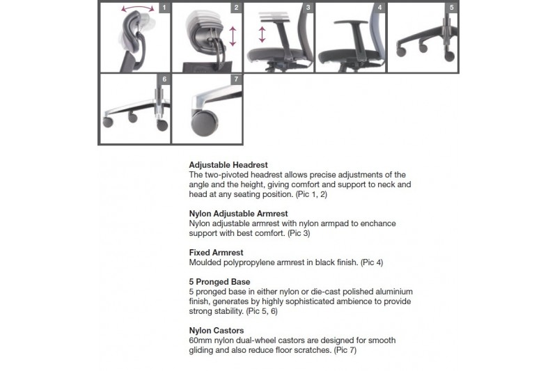 * NB20 – Nylon High Base; A60 – Fixed Armrest