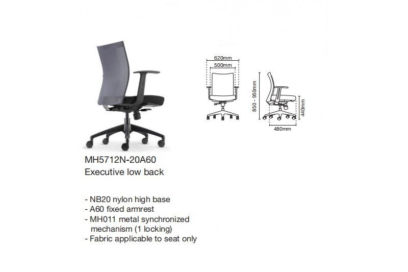 | 04 | MH5712N-20 | Executive Low Back without Arm | 522.00 | 539.00 | 580.00 |