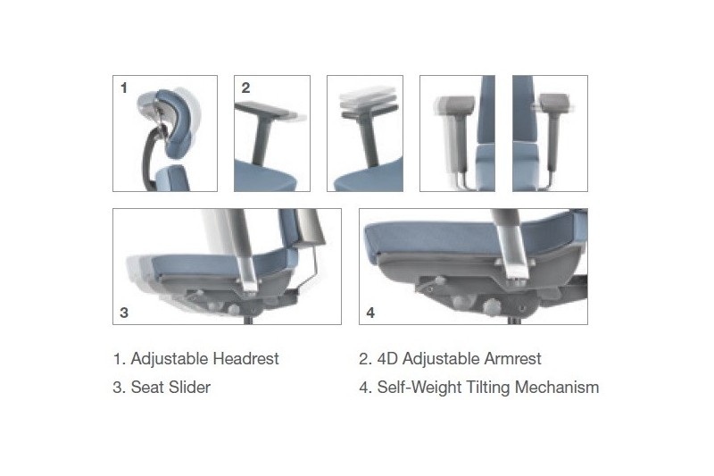 * AB10 – Aluminium Base, D98 – 4D Aluminium Adjustable Armrest