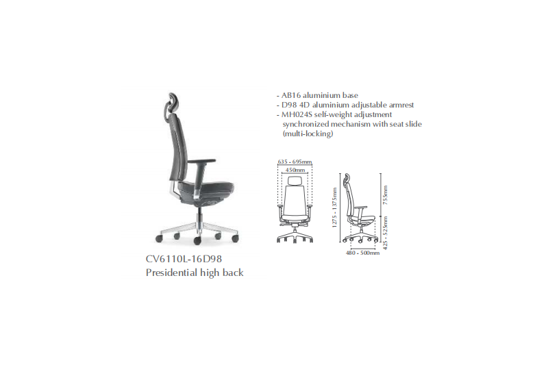 | 01 | CV6110L-10D98 | Presidential High Back | 950.00 | 968.00 | 1,049.00 |