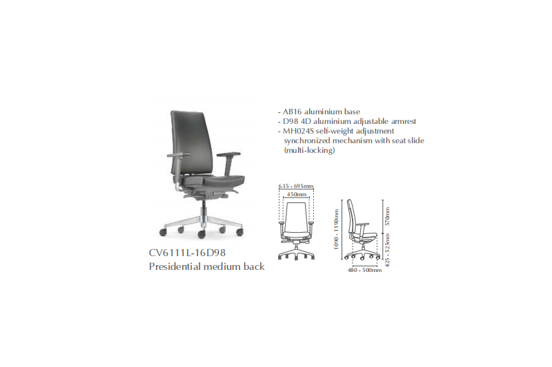 | 02 | CV6111L-10D98 | Presidential Medium Back | 869.00 | 887.00 | 968.00 | 1,448.00 |