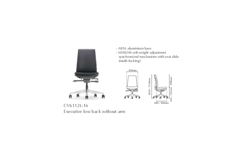 | 04 | CV6112L-10 | Executive Low Back without Arm | 725.00 | 742.00 | 823.00 | 1,274.00 |
