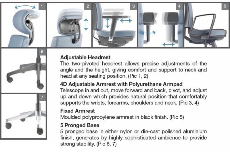 Clover is a hardworking task chair designed to handle long hours of serious sitting. With fully upholstered back and PU padded armrest, Clover brings an element of sophistication to any workspace. Specifications: 4D Adjustable Armrest with Polyurethane Armpad Fixed Armrest 5 Pronged Base Nylon Casting Adjustable Seat Depth/ Slider Mechanism Self...