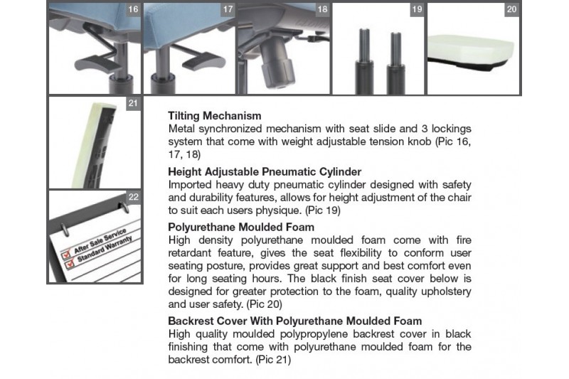 Hugo is designed with careful and meticulous sewing of the upholstery based on high quality and nest craftsmanship. The chair comes with adjustable backrest that support and improve the sitting posture. Aim to harmonize the environment, the premium design of the chair sits in seamlessly in all sort of office environment – be it a big office space or even...