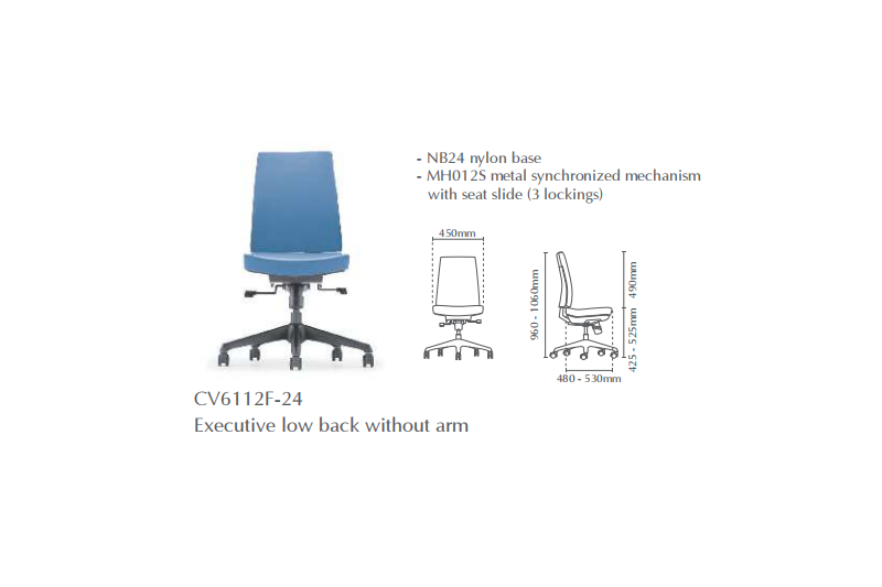 | 04 | CV6112F-24 | Executive Low Back without Arm | 586.00 | 603.00 | 661.00 |