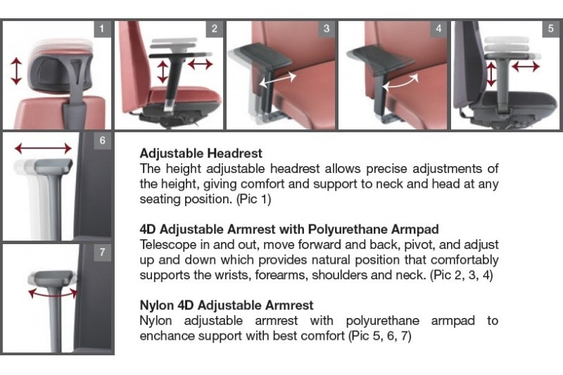 * AB10 – Aluminium Base, D98 – 4D Aluminium Adjustable Armrest