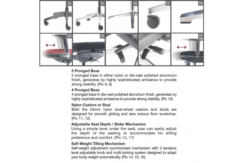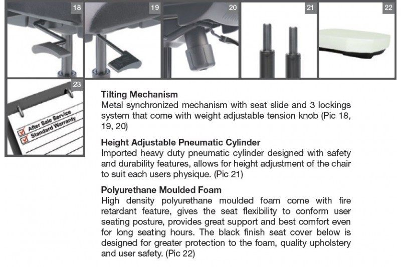 Hugo is designed with careful and meticulous sewing of the upholstery based on high quality and nest craftsmanship. The chair comes with adjustable backrest that support and improve the sitting posture. Aim to harmonize the environment, the premium design of the chair sits in seamlessly in all sort of office environment – be it a big office space or even at your small office home office (SOHO). Hugo pave the way to the new standard of the cushion chair.