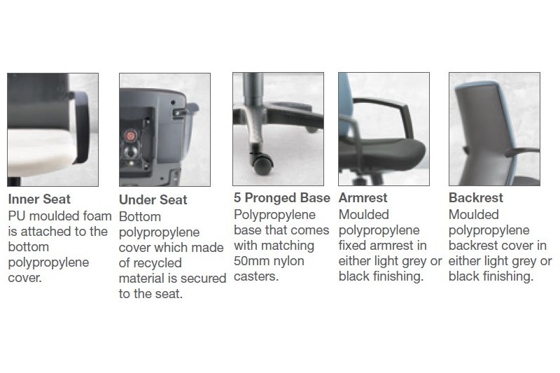 * PB30 – Polypropylene Base, A76 – Fixed Armrest (Black)