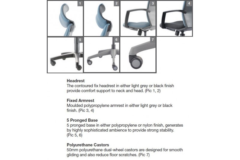 Clover is a hardworking task chair designed to handle long hours of serious sitting. With fully upholstered back and PU padded arrest, Clover brings an element of sophistication to any workspace. Specifications: 4D Adjustable Armrest with Polyurethane Armpad Fixed Armrest 5 Pronged Base Nylon Casting Adjustable Seat Depth/ Slider Mechanism Self...