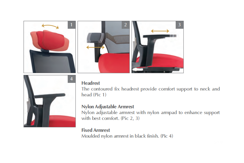 * AB18 – Aluminium Base, D95 – Adjustable Armrest