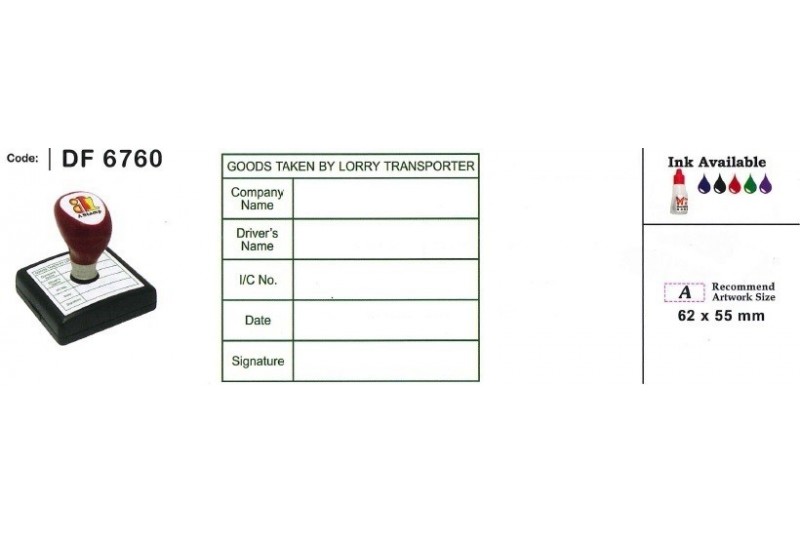 - Multi ink colour or single ink colour - Easy to re-inking - Cystal clear imprints (sharper impression) - More reliable & long lasting pre-ink stamp Ink Available: Blue/ Black/ Red/ Green/ Violet/ Brown/ Pink/ Orange/ Yellow/ SkyBlue *Please email us the draft: sales@sheltonmart.com.my