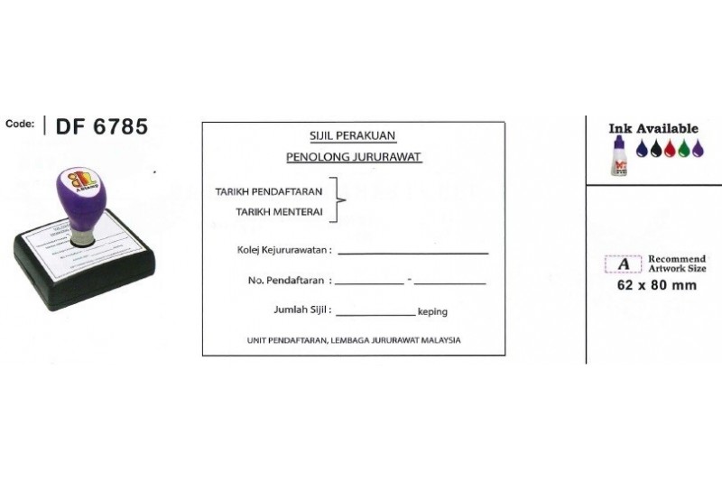 - Multi ink colour or single ink colour - Easy to re-inking - Cystal clear imprints (sharper impression) - More reliable & long lasting pre-ink stamp Ink Available: Blue/ Black/ Red/ Green/ Violet/ Brown/ Pink/ Orange/ Yellow/ SkyBlue *Please email us the draft: sales@sheltonmart.com.my