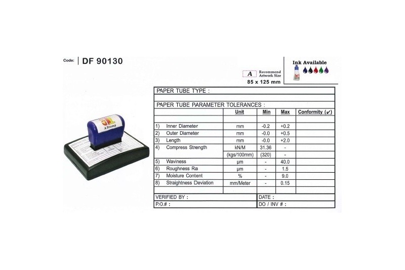 - Multi ink colour or single ink colour - Easy to re-inking - Cystal clear imprints (sharper impression) - More reliable & long lasting pre-ink stamp Ink Available: Blue/ Black/ Red/ Green/ Violet/ Brown/ Pink/ Orange/ Yellow/ SkyBlue *Please email us the draft: sales@sheltonmart.com.my