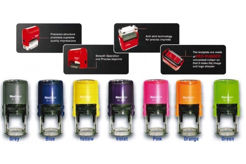 All Text-plate are made of Red Rubber Word: 1.5mm thickness Base: 0.4mm thickness Size: R 29mm Cover Selection: Grey/Blue/Yellow/Violet/Pink/Orange/L.Green Ink Available: Blue/Black/Red/Green/Violet *Please email us the draft: sales@sheltonmart.com.my