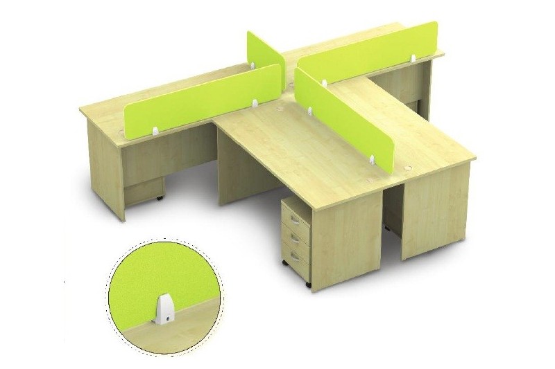 Thickness : 45mm Partition Height : 1200mm Frame : Silver 2-Seaters L-Shape Desk Equipped with 45mm Thickness Combionation with Solid & Half Poly Partitions. This Workstation Enables 2 Individuals Of A Team To Get Connected Efficiently.