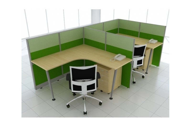 Thickness : 45mm Partition Height : 1200mm Frame : Silver 2-Seaters L-Shape Desk Equipped with 45mm Thickness Combionation with Solid & Half Poly Partitions. This Workstation Enables 2 Individuals Of A Team To Get Connected Efficiently.